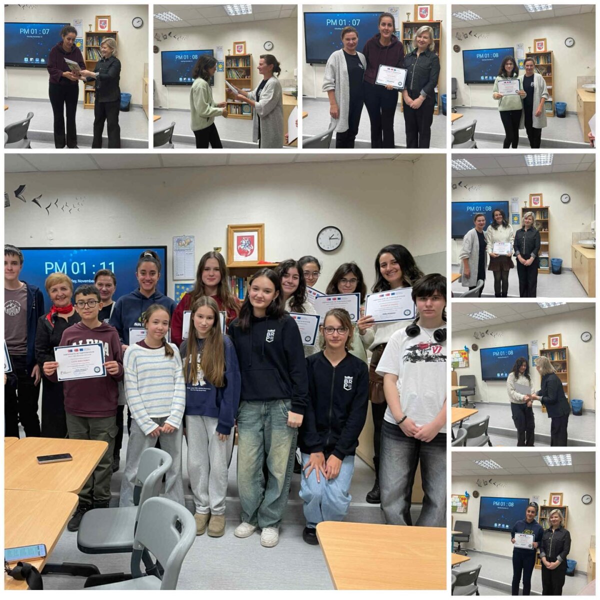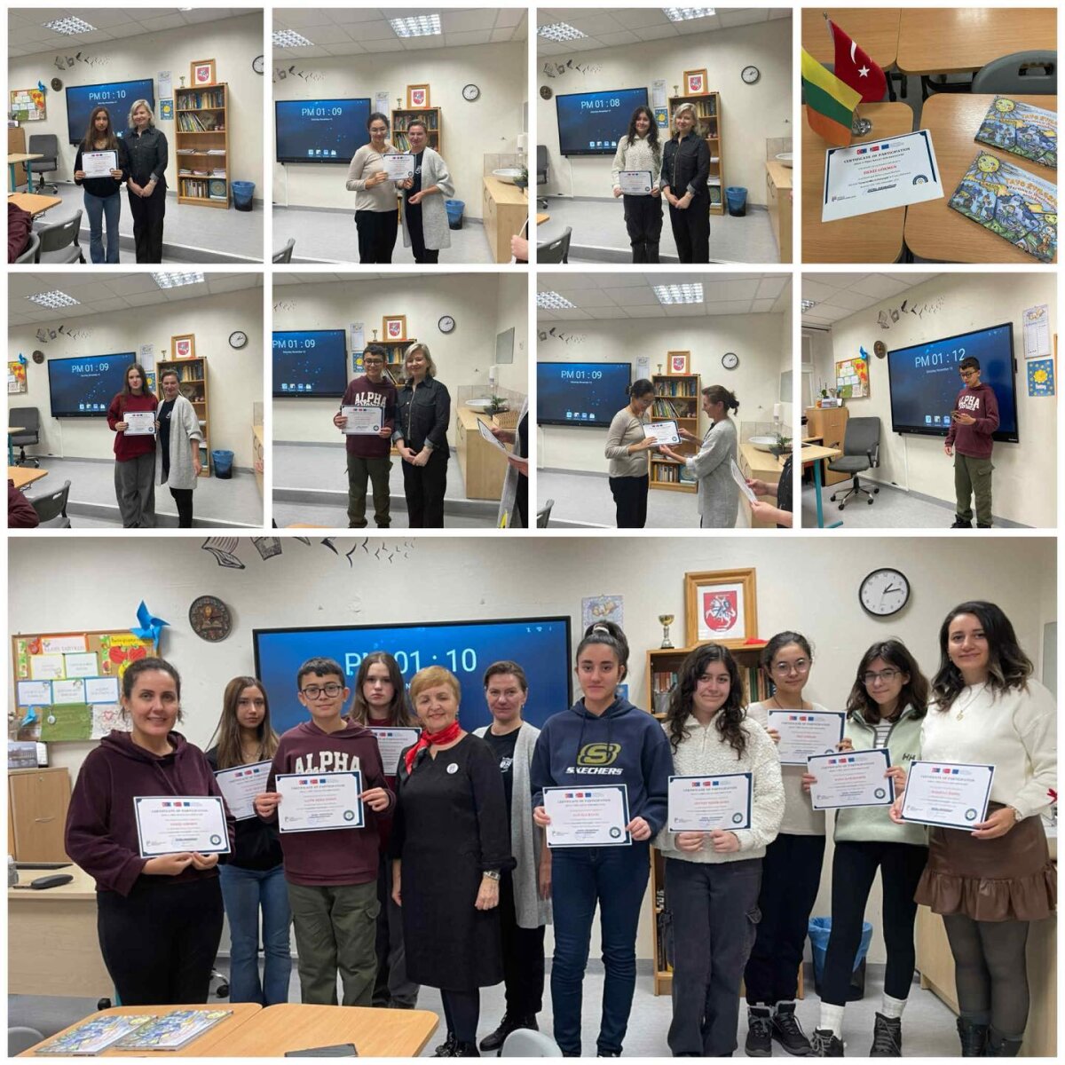Savaitės pabaigoje surengta uždarymo ceremonija buvo kupina šiltų žodžių, emocijų ir padėkų. Dalyviai dalijosi įžvalgomis, patirtimis ir džiugiomis akimirkomis. Už sėkmingai įgyvendintas veiklas visi projekto dalyviai apdovanoti sertifikatais. Turkijos mokiniai pripažino, kad kelionė į Lietuvą jiems buvo didžiulis iššūkis – jie pirmą kartą lankėsi užsienyje. Tačiau mūsų bendruomenės geranoriškumas, šypsenos ir rūpestis padėjo jaustis saugiai ir drąsiai.