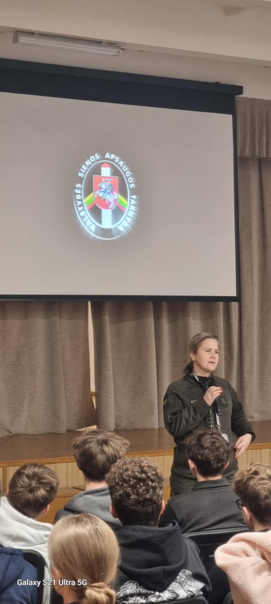Šiandien Barboros Radvilaitės progimnazijos aštuntokus aplankė VSAT prie LR VRM Vilniaus pasienio rinktinės bendruomenės pareigūnai Jolita Kuncaitienė ir Rolandas Meidus.