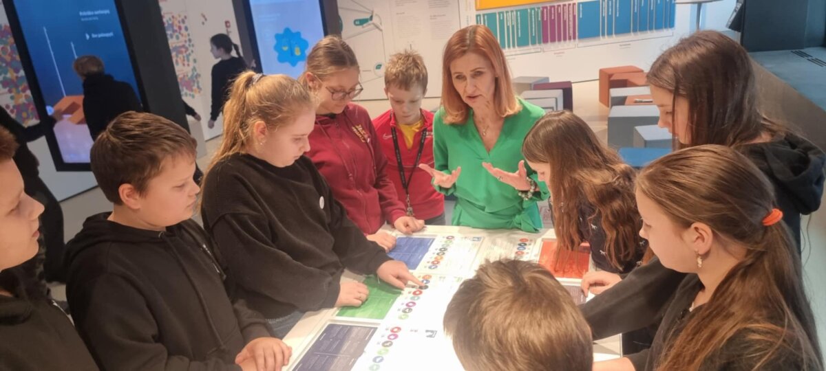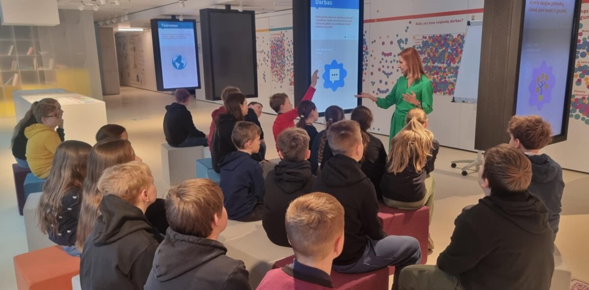 Finansų laboratorijos lektorė Natalija Vėževičienė pasakojo, kaip išmintingai valdyti asmenines lėšas – kas yra finansų planas (biudžetas), kaip paskirstyti pinigus ir susitaupyti, diskutavome apie investavimą – ne tik pinigų, bet ir į save. Išbandėme interaktyvias veiklas, žaidėme mainų žaidimą ir net laikėme finansinio raštingumo egzaminą.