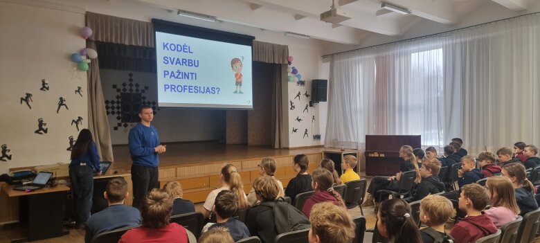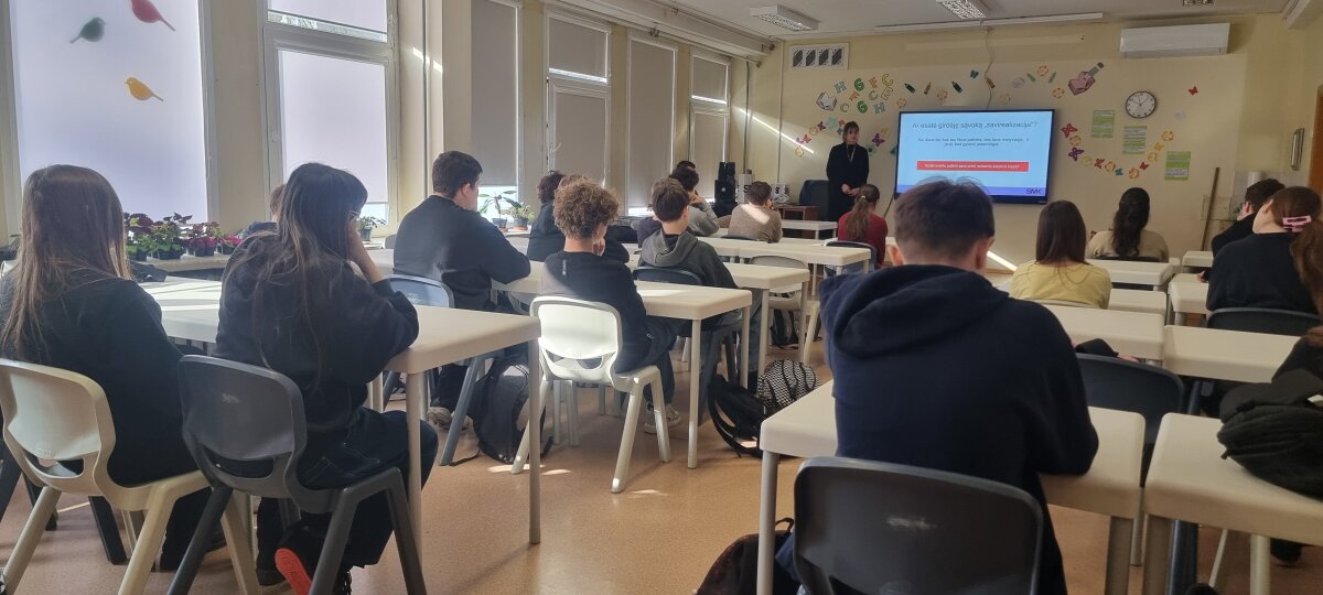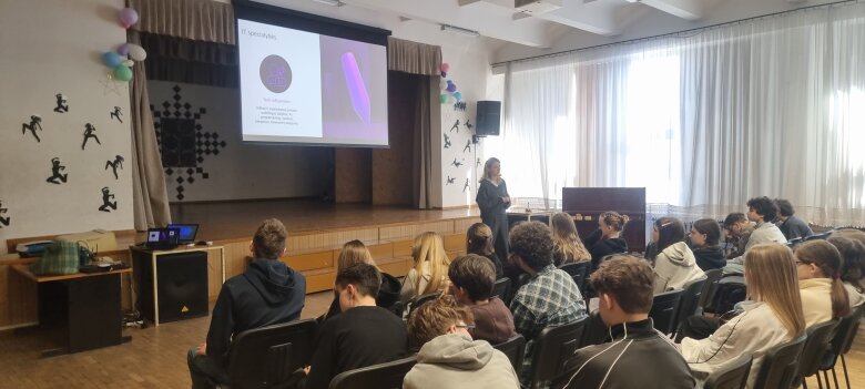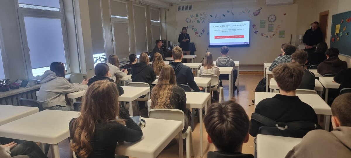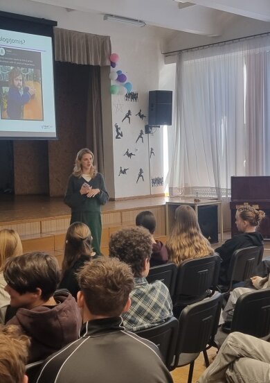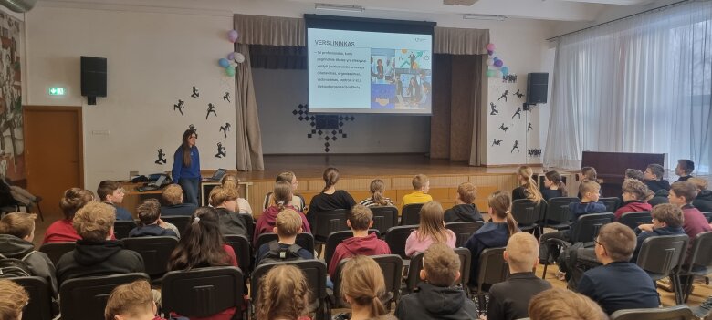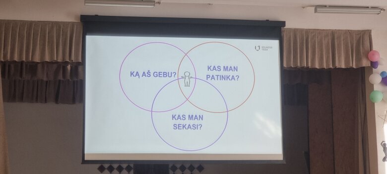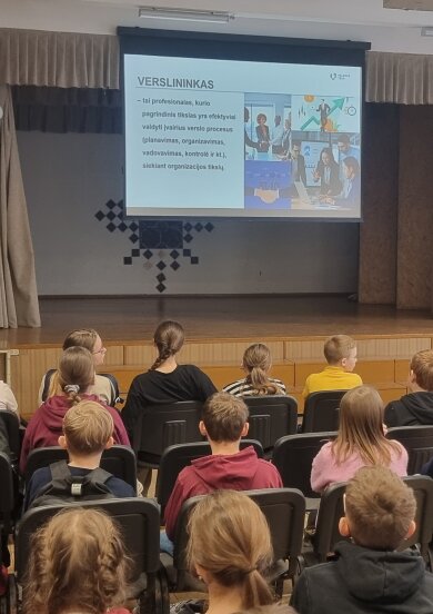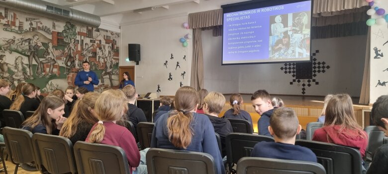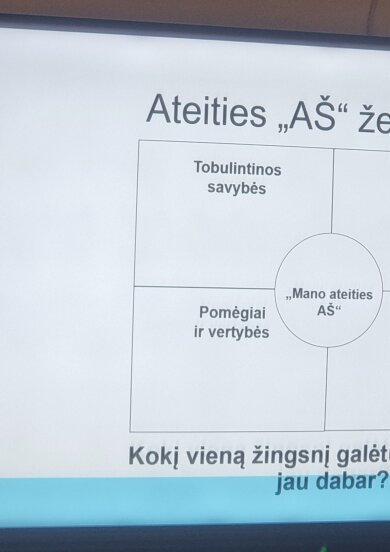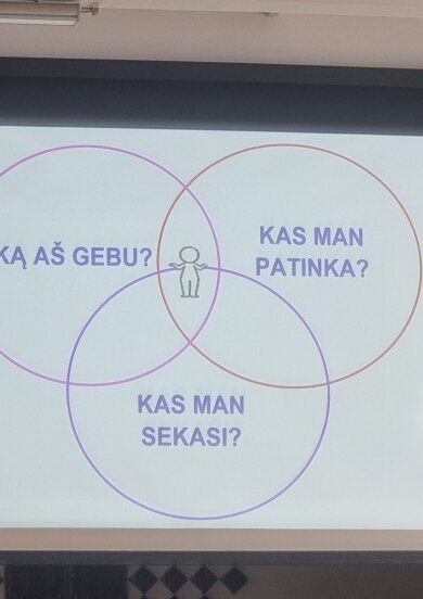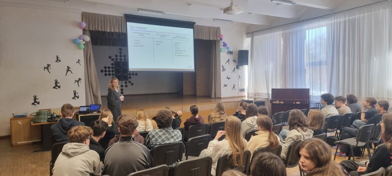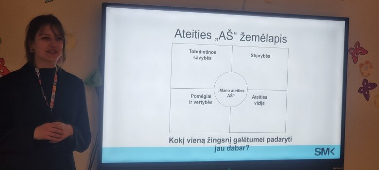 SMK (Socialinių mokslų kolegija) jaunesnioji marketingo specialistė Aistė vedė pamoką „Savirealizacija, karjera – „Ateities Aš“. Mokiniai kūrė savo ateities žemėlapį – įsivardijo stiprybes, pomėgius, vertybes, tobulintinas savybes ir susiejo jas su ateities vizija. Svarbiausia – kiekvienas įvardijo pirmą žingsnį, kurį gali žengti jau šiandien.