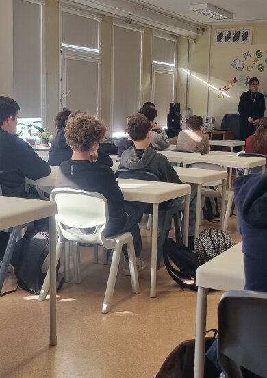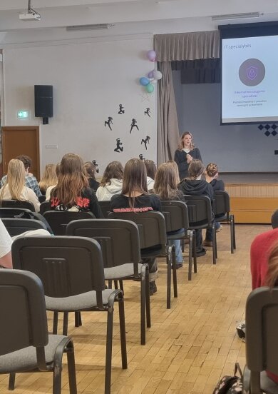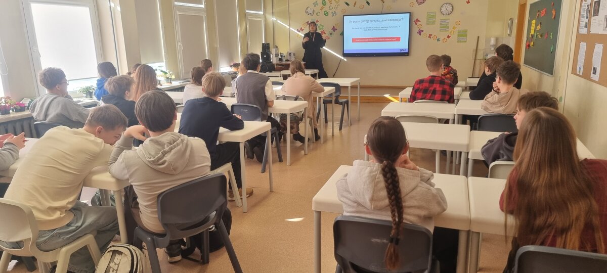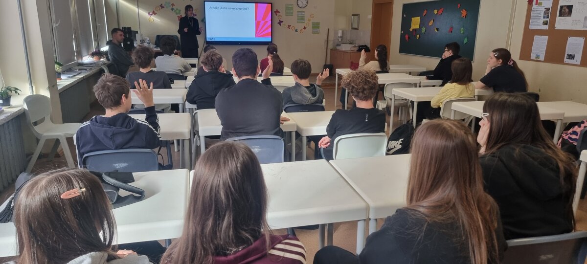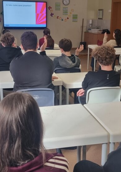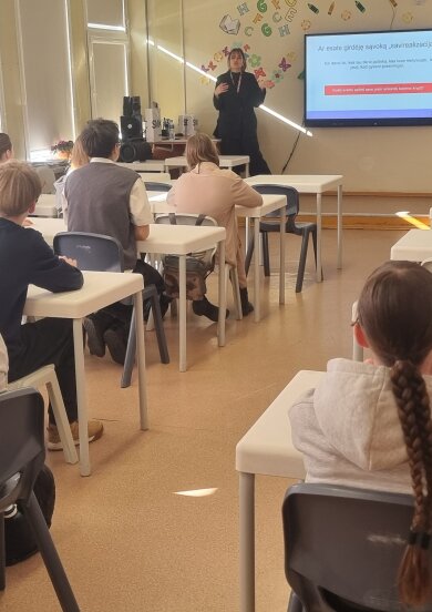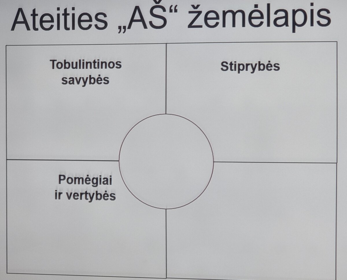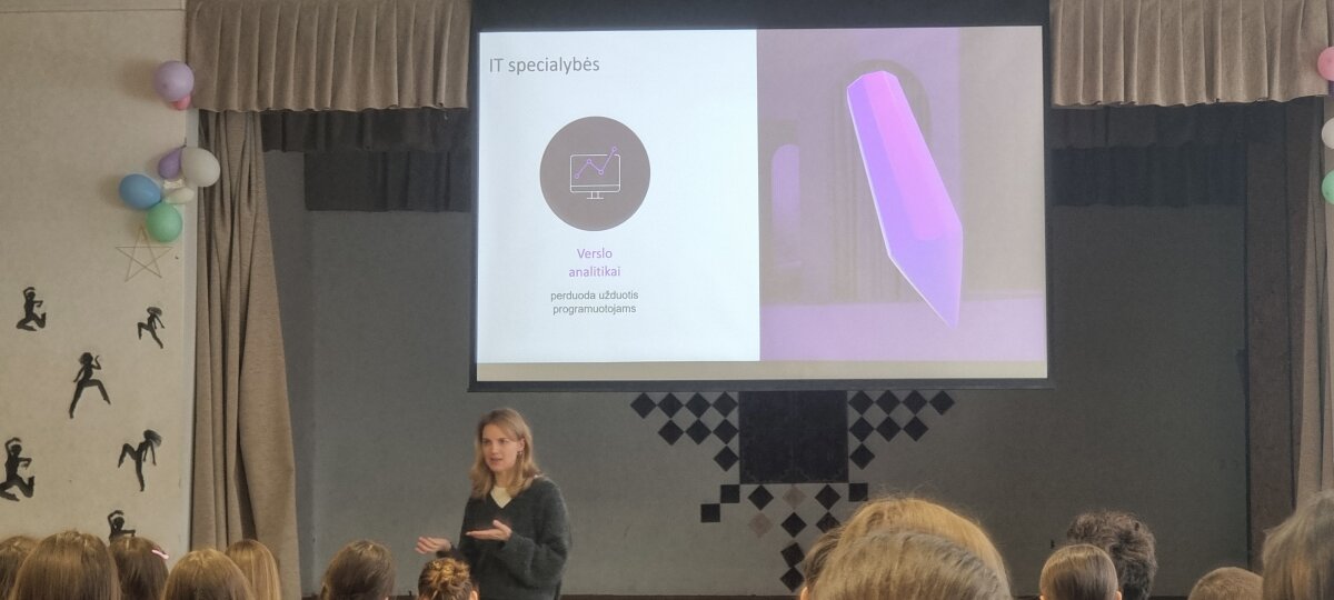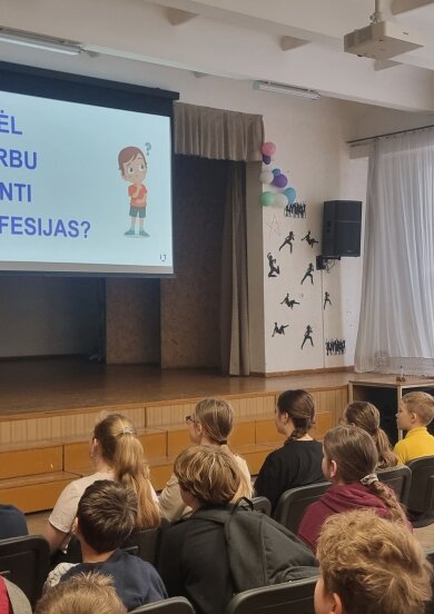 SMK (Socialinių mokslų kolegija) jaunesnioji marketingo specialistė Aistė vedė pamoką „Savirealizacija, karjera – „Ateities Aš“. Mokiniai kūrė savo ateities žemėlapį – įsivardijo stiprybes, pomėgius, vertybes, tobulintinas savybes ir susiejo jas su ateities vizija. Svarbiausia – kiekvienas įvardijo pirmą žingsnį, kurį gali žengti jau šiandien.